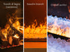 L’unione di luce e vapore genera un’immagine tridimensionale estremamente realistica della fiamma. Un nebulizzatore a ultrasuoni vaporizza l’acqua all’interno dell’apparecchio. Il vapore, illuminato da LED perfettamente calibrati, si muove come una fiamma viva. A una certa distanza è quasi impossibile distinguerlo da un fuoco vero.