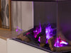 Il camino elettrico da incasso Dimplex 3 Step Multi Opti-myst con vetratura su tre lati ed effetto fiamma multicolore offre la massima flessibilità di installazione come camino panoramico in pareti, scaffalature o facciate attrezzate.